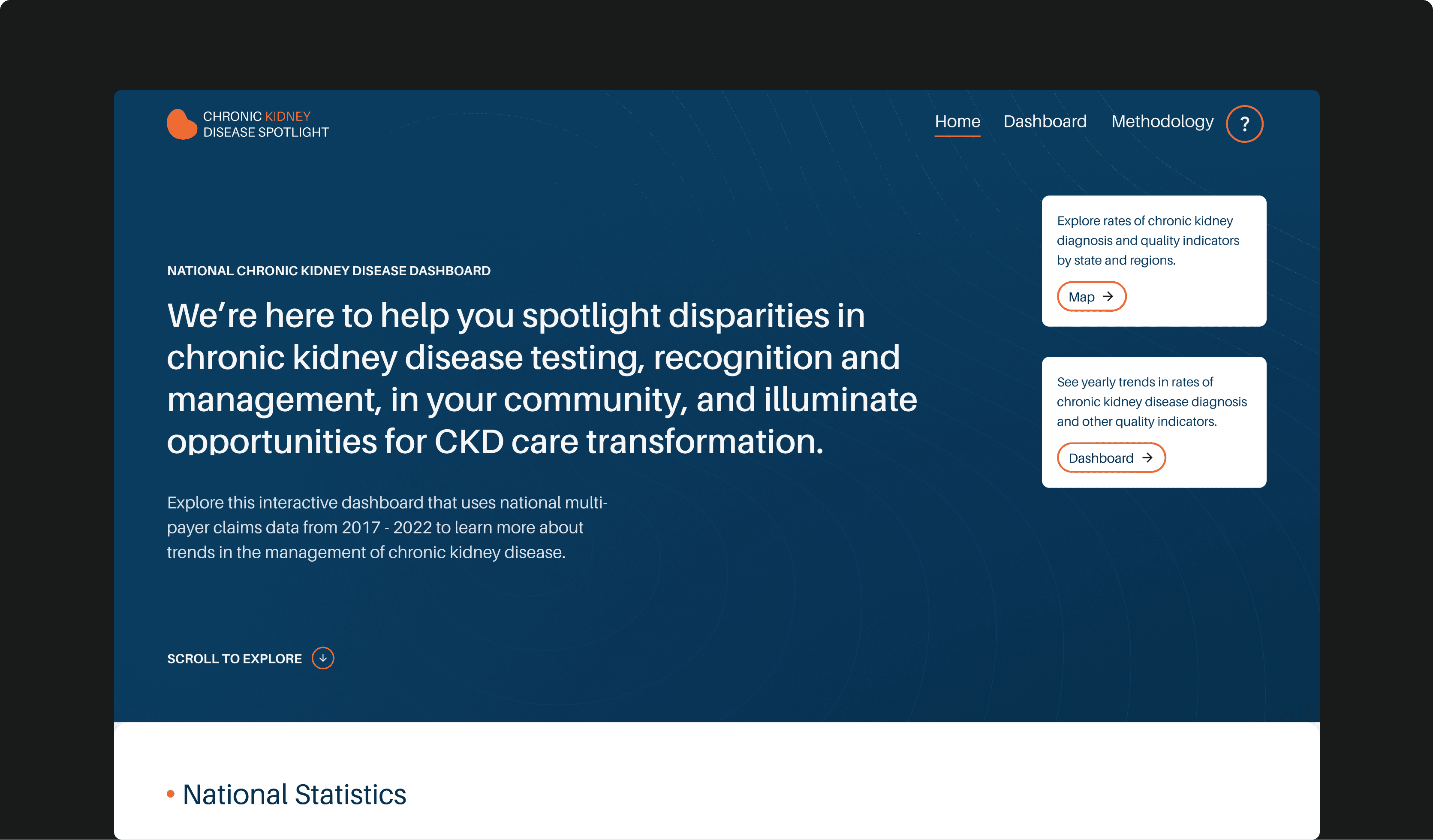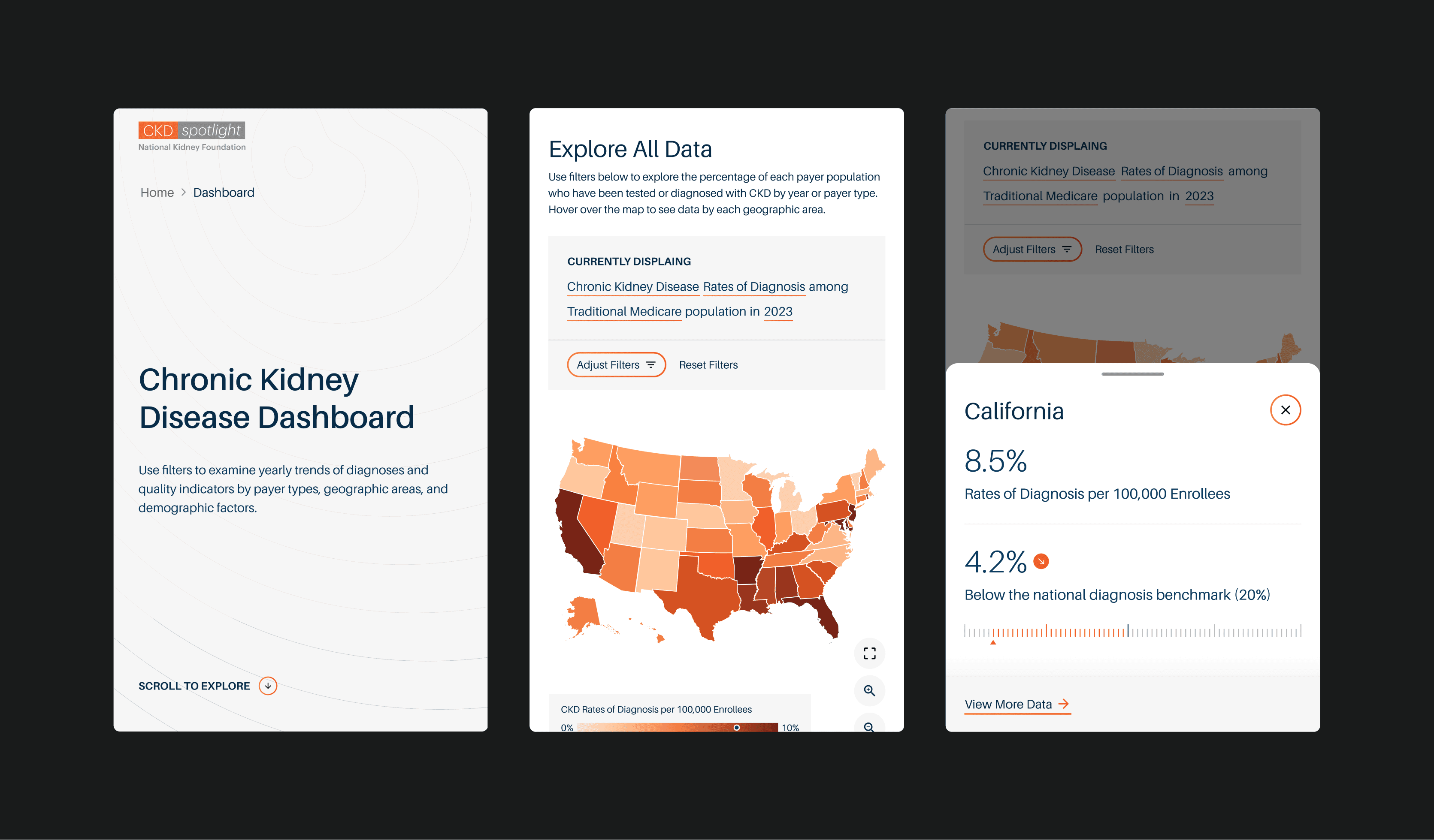 Design a (comprehensive) dashboard for patient care experts to explore (real data) on the prevalence and treatment of (chronic kidney disease).