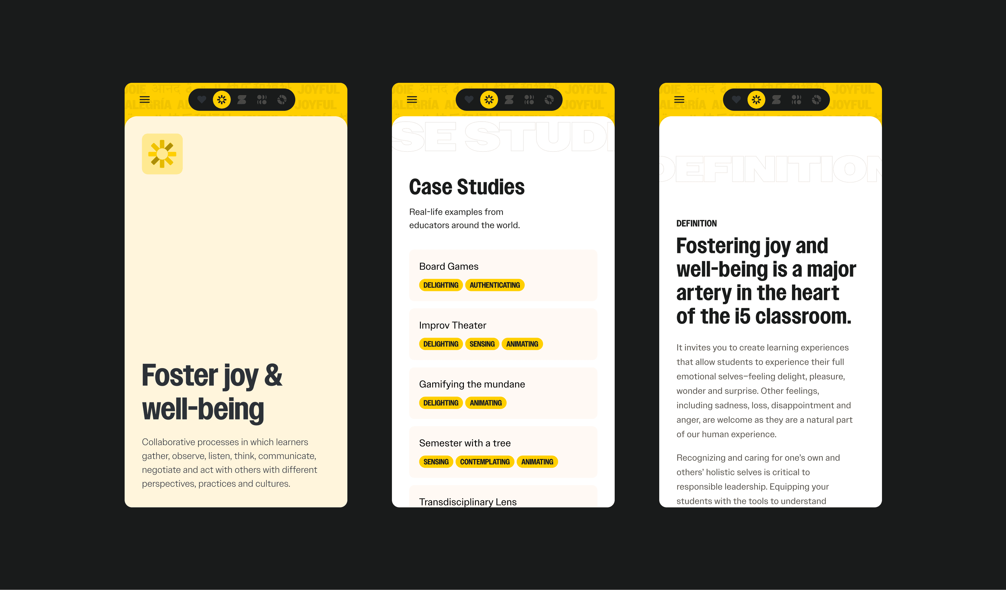 We designed a site that challenges (business as usual)—what if business education fostered (joy) and (creativity)? The i5 Playbook gives professors real examples and strategies to do this in their classrooms.
